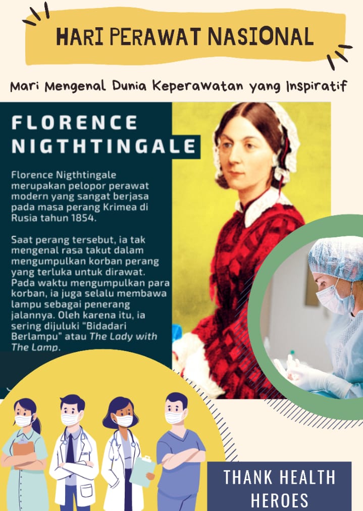Pada tanggal 17 Maret diperingati sebagai Hari Perawat Nasional. Di tengah pandemi, perawat merupakan pejuang dalam penanganan wabah Covid-19. Sudah banyak perawat yang gugur dalam menjalankan tugasnya. Saat ini, kita bisa menghargai jasa para pahlawan kesehatan dengan cara memberikan semangat, melakukan protokol kesehatan, dan mendoakan agar seluruh tenaga medis yang bertugas senantiasa diberikan keselamatan dan kesehatan.