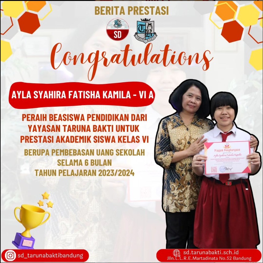 Prestasi Siswa Akademik & Nonakademik TA 2025/2026 Prestasi Siswa Akademik & Nonakademik TA 2024/2025 Peraih Beasiswa Prestasi Akademik Siswa Kelas VI TA 2023/2024 Prestasi siswa akademik & nonakademik